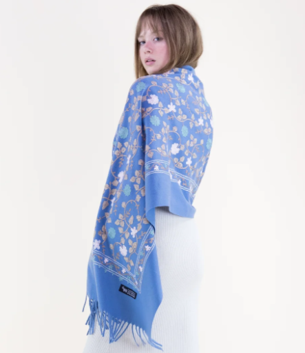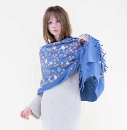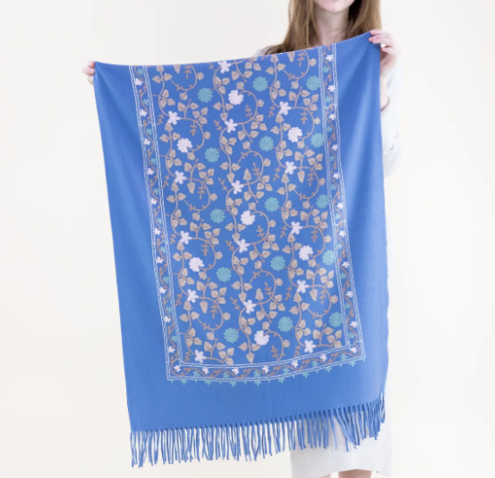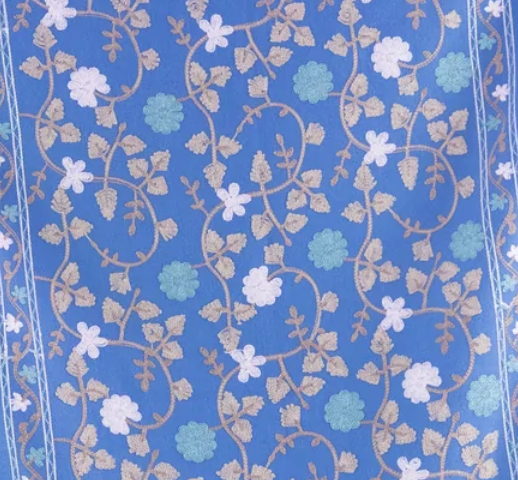 Embroidered Floral Vines Scarf in Light Blue