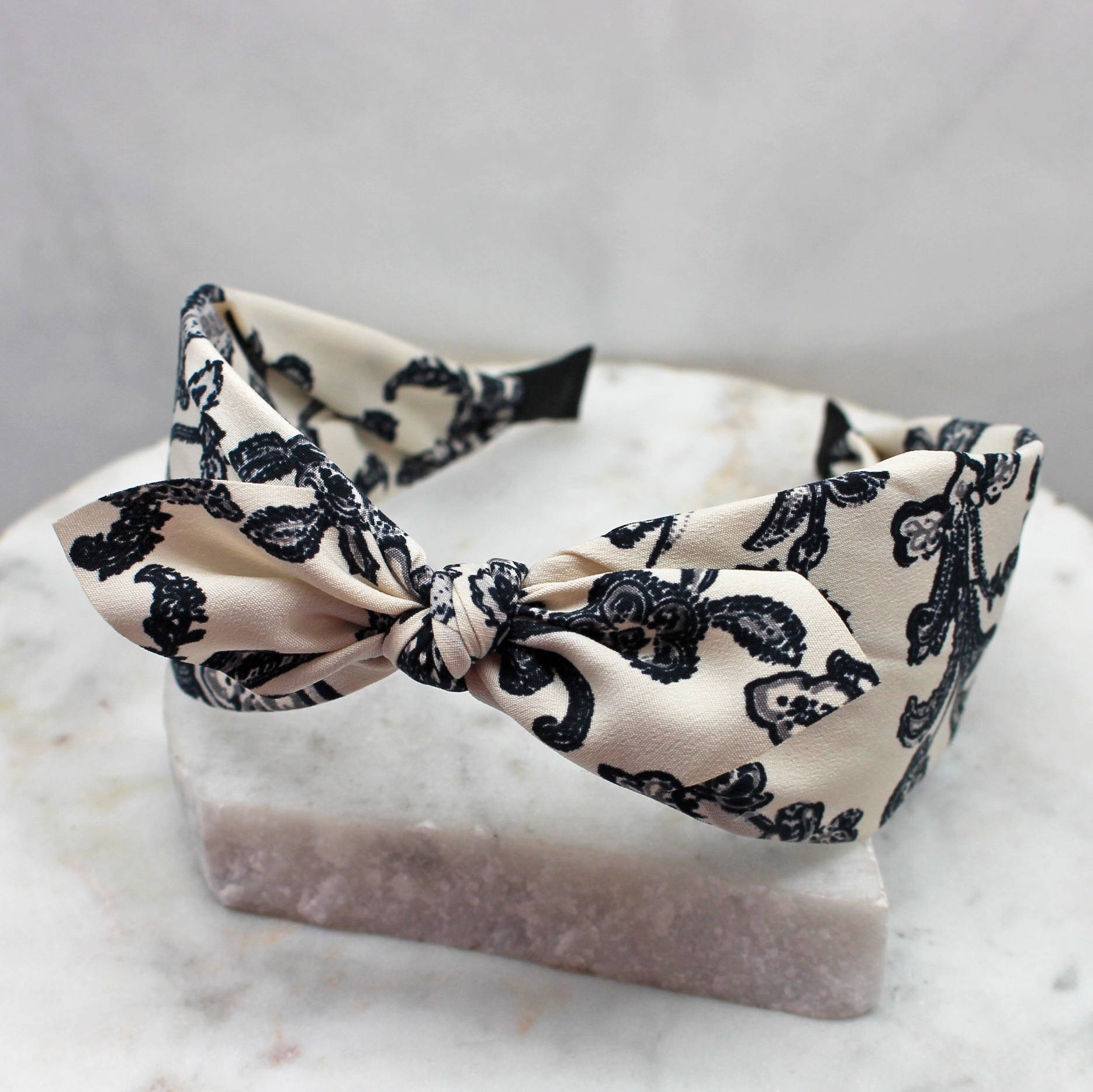 Ivory & Navy Paisley Headband