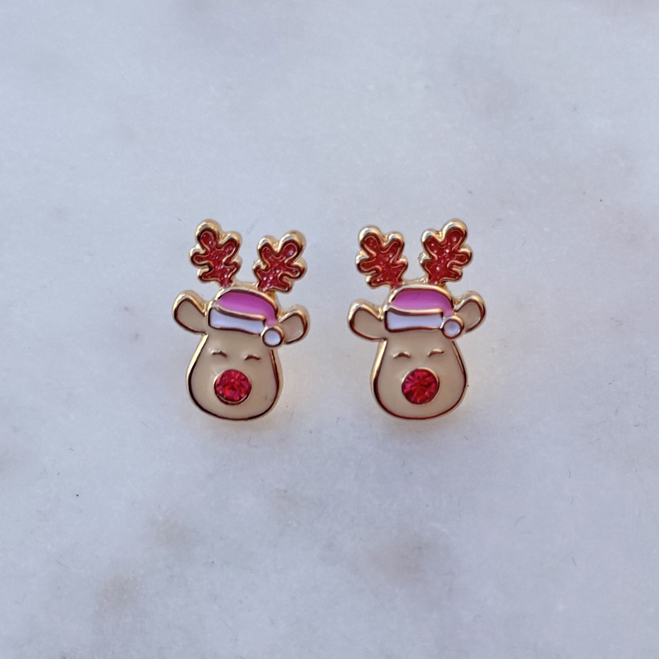 Pink Rudolph Stud Earrings