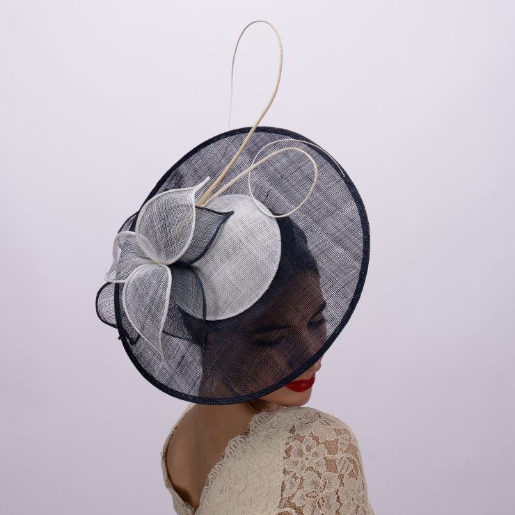 Two-Tone Saucer Fascinator in Navy & White